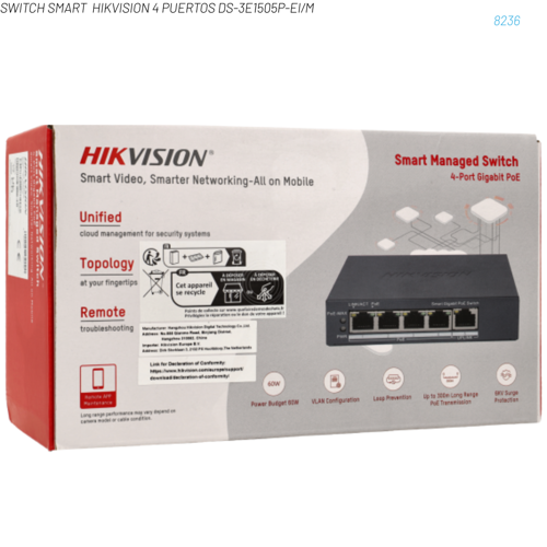SWITCH 8 PUERTOS HIKVISION DS-3E1510PEIM S 3…